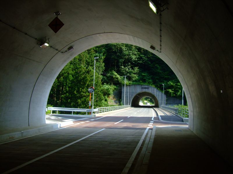 場所は、高知県仁淀川町。 R33からR197に向けて、すなわち北から南に向けてアプローチ。 バイパスの始まり。 で、いきなりトンネルが見える。 織合トンネル 長さ216m、2013年竣工。 このトンネルの仮称は、大植1号トンネル。 "1号"とつくことからお気づきだろうが、このバイパスには複数(計3本)のトンネルが建設されている。 しかし、暑い暑い…。 この日の高知県の予想最高気温は35度。 あまりに暑くて、持ってきた飲料水をバイパス到着直前で飲み干してしまうという失敗をやらかしてしまった( いやまぁ、それだけ暑いってことですな…。 1号トンネルこと織合トンネルの内部の様子。 あっさりと出口の見える、短めのトンネルである。 そうしてくぐり抜けると… はやくも次のトンネルが見える! つづく。 PR |