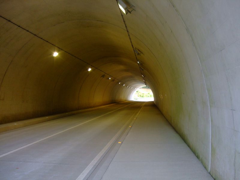 川沿いを1.2~1.5車線のくねった道でどうにか通り抜けていたものが、短いトンネルによってあっさりと通過できるようになったわけだ。