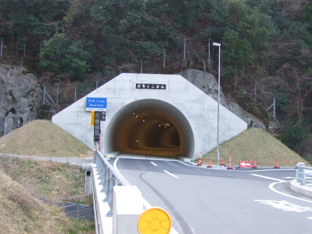 万年トンネル L=735m であることが示されている。