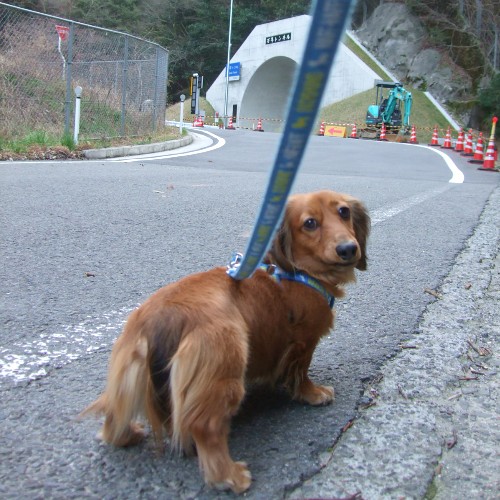 今回はMダックスを連れて来ているが、歩道はあんな感じなのでトンネル歩きは無理。